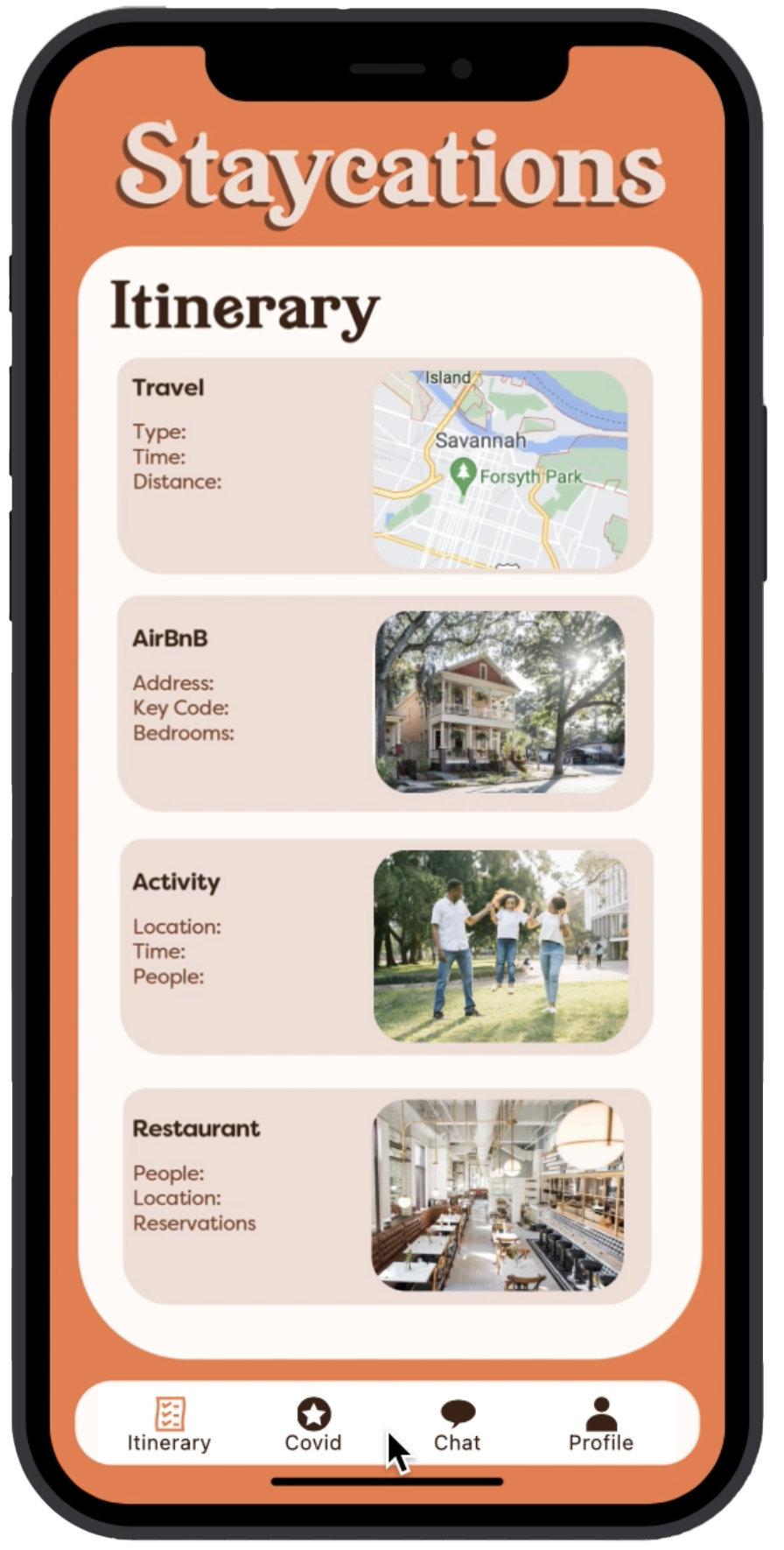 This brand experience was created as AirBnB’s response to COVID-19 during the period where people were still unable to travel much, especially internationally. During that time, travel was missed and wanted but the return to it was slow, cautious, and difficult. But after a few difficult years, the need for vacations was still very prevalent. The solution for people is a fictional AirBnB app called Staycations.